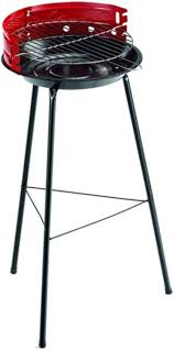 In acciaio verniciato e smaltato. Griglia di cottura in acciaio cromato regolabile in 3 posizioni, certificata per alimenti. Paravento in acciaio verniciato con innesto di sicurezza. Braciere smaltato. Gambe ad innesto.